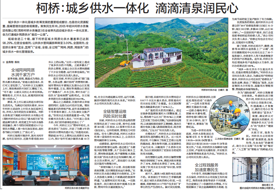 6月26日,《浙江日?qǐng)?bào)》專(zhuān)版刊登《柯橋:城鄉(xiāng)供水一體化 滴滴清泉潤(rùn)民心》,全面深入報(bào)道了柯橋城鄉(xiāng)供水一體化的創(chuàng)新探索與實(shí)踐成效。