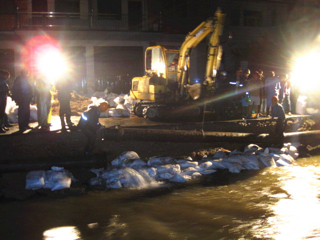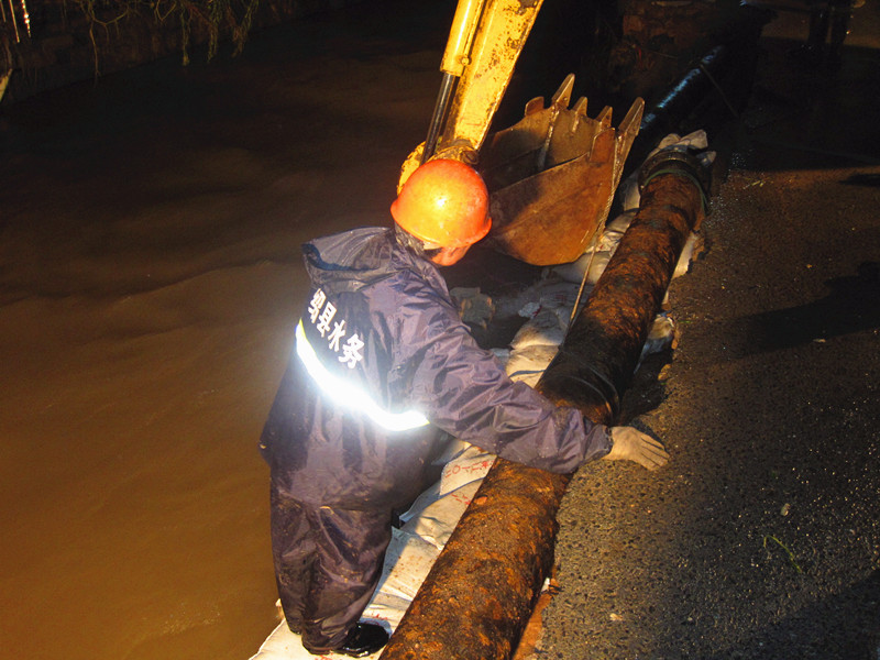 災(zāi)情就是命令!集團(tuán)接到縣防指命令后,立即啟動(dòng)大口徑管道應(yīng)急搶修預(yù)案。根據(jù)受災(zāi)情況,集團(tuán)迅速派出由20多名人員組成的專(zhuān)業(yè)搶修隊(duì)伍,隨帶各種專(zhuān)業(yè)搶修工具,冒著大雨趕赴受災(zāi)點(diǎn),并于下午16時(shí)進(jìn)入現(xiàn)場(chǎng)開(kāi)始搶修。經(jīng)過(guò)8個(gè)小時(shí)的持續(xù)作戰(zhàn),搶修隊(duì)克服重重困難,終于搶通供水管道。然而,凌晨3點(diǎn)多,敖紅了雙眼的搶修人員卻再次接到任務(wù),立即趕赴王壇鎮(zhèn)幫助王壇鎮(zhèn)水廠解決因停電造成管網(wǎng)無(wú)法輸水的問(wèn)題,于凌晨5點(diǎn)恢復(fù)供水。