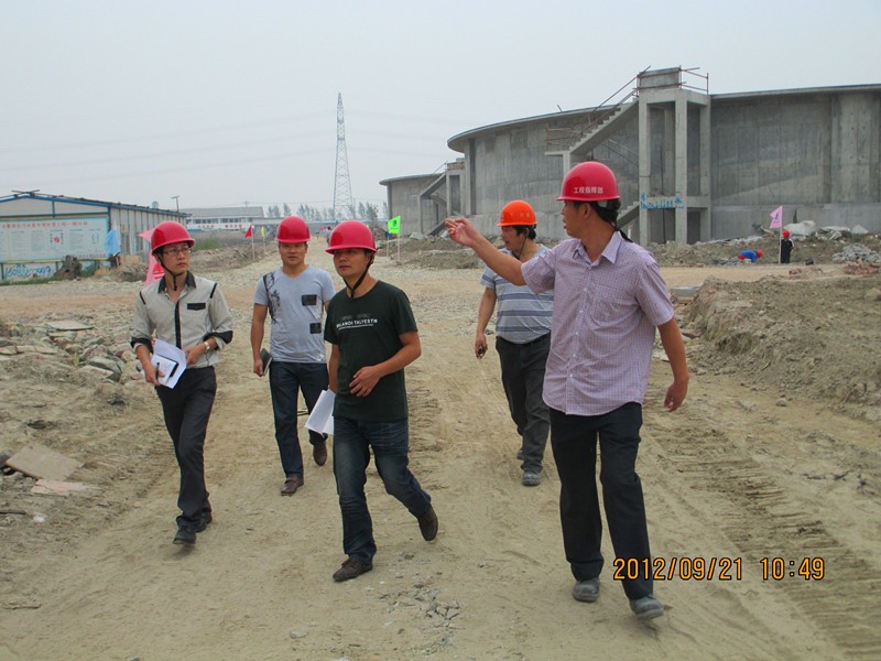 圖為現場檢查濱海印染產業集聚區污水集中預處理工地