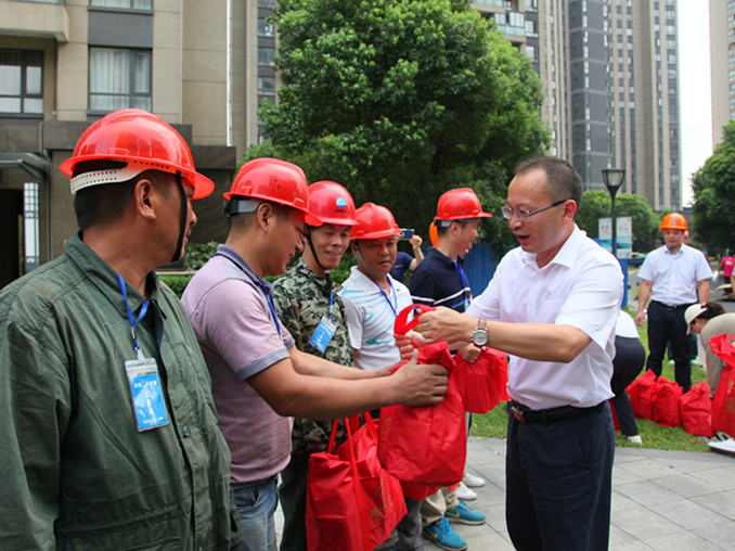 7月30日下午,區委副書記、區長趙如浪,區政協主席孟柏干一行冒著高溫來到位于大坂風情小區高層住宅二次供水改造工程現場,看望慰問高溫下堅守在崗位上的集團一線工作人員,給他們送上防暑降溫用品,并細心叮囑大家高溫天一定要注意防暑。