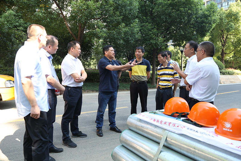 8月24日上午,區政協副主席裘江新一行7人到大坂風情、新浪琴灣及西周嘉園等高層小區,實地督查了2018年柯橋城區老高層住宅二次供水設施改造工作。集團黨委書記、董事長周儉、副總經理胡曉峰,柯橋供水公司董事長吳紹文、總經理李葉茂副總經理王培永、曹志潮等陪同。