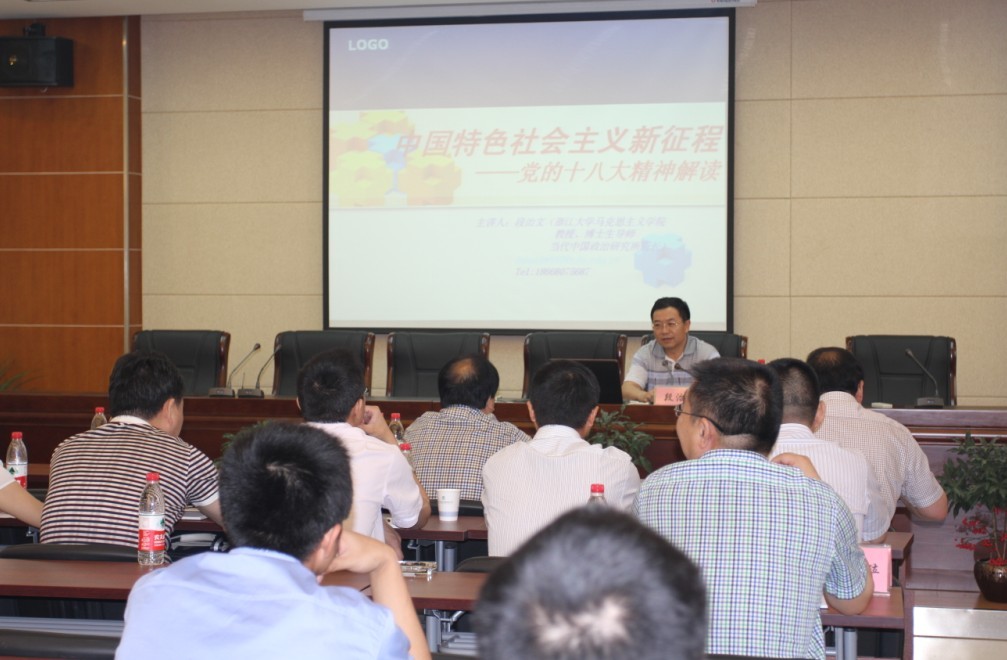培訓(xùn)中,段教授從堅定中國特色社會主義的信念、堅持科學(xué)發(fā)展觀的科學(xué)指導(dǎo)、堅持科學(xué)的改革開放觀等六個方面對十八大精神進行解讀。深邃的政治理論用深入淺出的語言、具體詳實的事例生動表述,使全體參加講座的人員受到了一次思想的洗禮。這對于進一步學(xué)習(xí)貫徹落實十八大精神發(fā)揮了積極的推動作用。