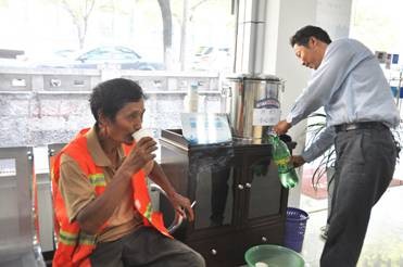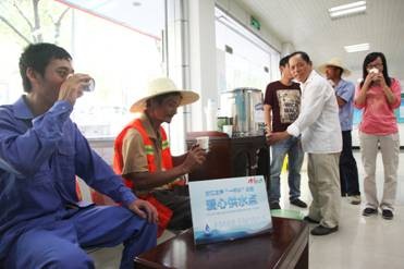 為進一步樹立公司良好的社會服務形象,紹興縣供水有限公司積極響應浙江之聲廣播電臺的倡議,從8月6日起,在柯橋城區、福全鎮、安昌鎮、錢清鎮等16個供水營業大廳開展“一杯水”大型公益活動,為戶外高溫工作者免費提供飲用水和短暫休憩場所。