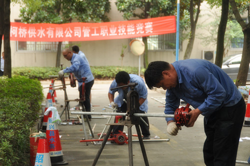 比賽分理論考試和實踐操作兩部分。理論考試涉及制圖、水力學、管材、管網(wǎng)管理、施工、安全等知識,實踐操作包括施工圖紙識讀、施工方案的編制、管道工程量的計算和管道的安裝等。此次職業(yè)技能競賽,全面檢驗了職工的崗位技能綜合素質(zhì),促進了供水搶修技能的提升。