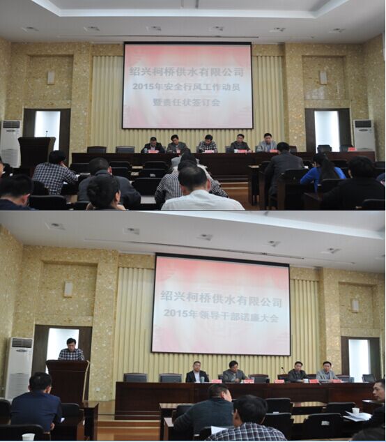 會(huì)上,公司領(lǐng)導(dǎo)班子成員及供水分公司經(jīng)理分別諾廉;安全生產(chǎn)分管副總就2015年安全、行風(fēng)工作進(jìn)行了動(dòng)員部署;公司總經(jīng)理李葉茂與14個(gè)部門(單位)簽訂了2015年度安全、行風(fēng)生產(chǎn)責(zé)任狀。