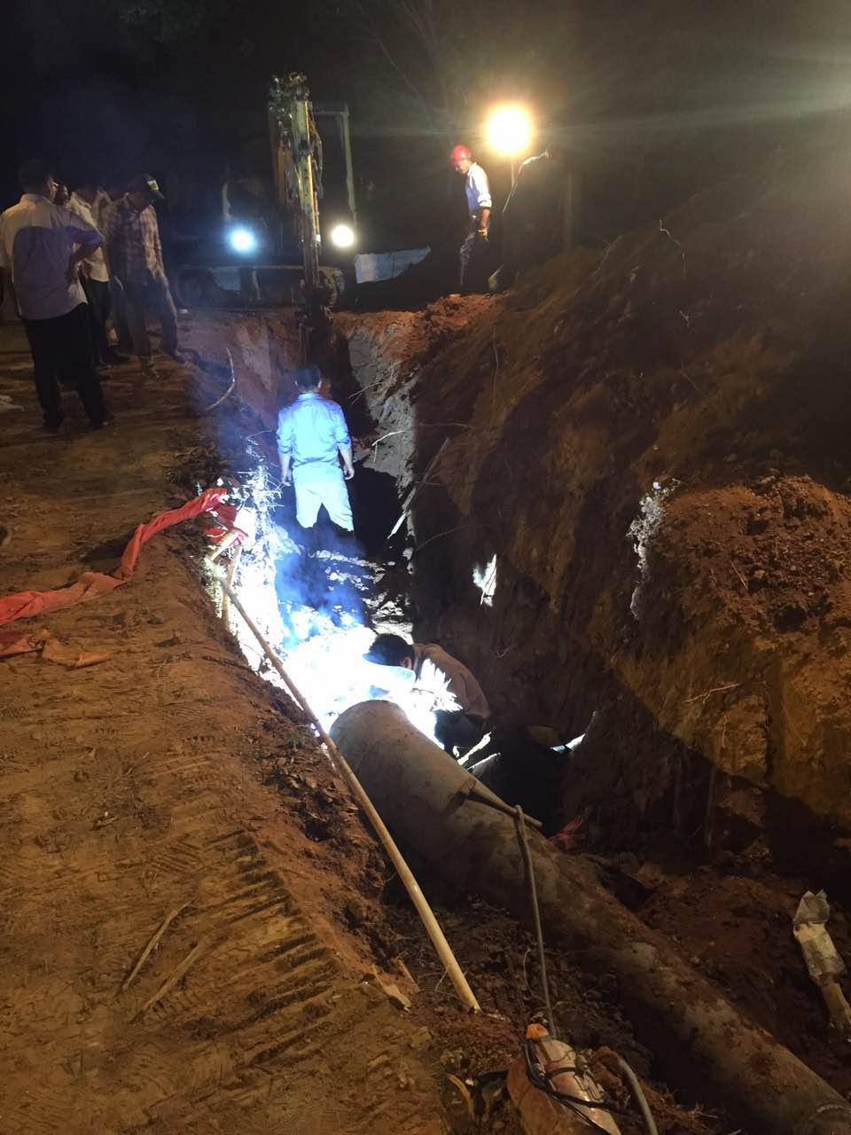 為進一步提高平水鎮水量水壓,8月11日晚,柯東分公司組織施工人員對口徑為DN500管的平水二期總管實施了兜口工程。